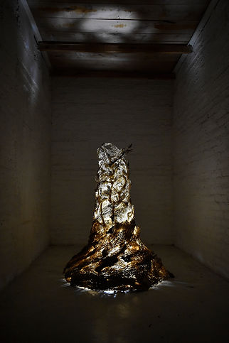 2018. En las tres piezas de la obra, se utilizaron las fibras que se encuentran en los esqueletos secos del nopal combinadas con otros materiales orgánicos. Con una luz direccionada las esculturas alojan la fragilidad y el misterio, la necesidad humana de llevar nuestra propia naturaleza hacia una introspección. La instalación está acompañada de sonidos arrítmicos grabados con instrumentos percusivos que representan la conexión material a los elementos con que fueron producidas las piezas.